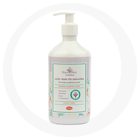 A loção Pós Epilatória da Dona Pele não contém corantes e possui ativos anti-inflamatórios, cicatrizantes, calmantes e clareantes.